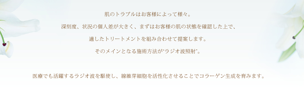 ラジオ波トリートメントで新陳代謝が正常化し、線維芽細胞の働きが活発に!脂肪をエネルギーにコラーゲンをどんどん生成するようになり、肌質が改善されていきます。余分な脂肪もケアできるので小顔効果にも!